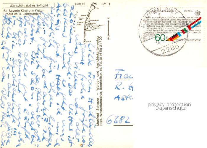 73163328 alte Postkarte Keitum Sylt St.-Severin-Kirche postalisch gelaufen Erhaltung siehe scans [NatalD47] KatCode: 11110001054133