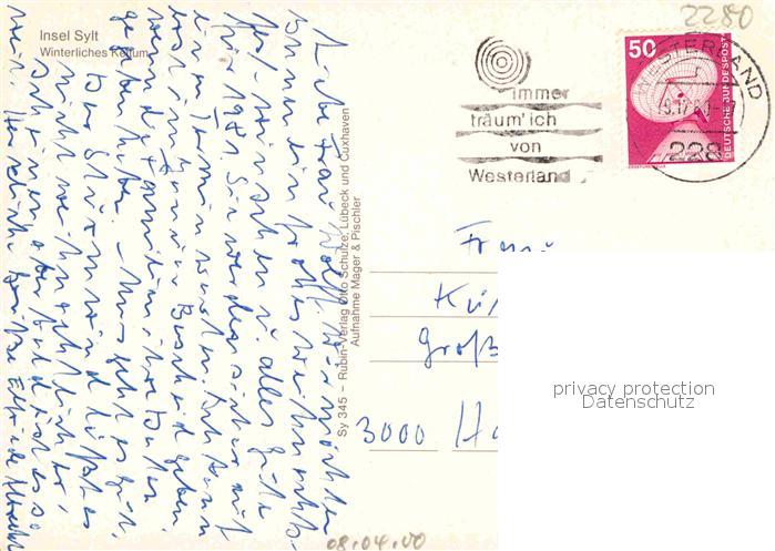 72901024 alte Postkarte Keitum Sylt Wintermotiv postalisch gelaufen Erhaltung siehe scans [WerneD78] KatCode: 11110001054133