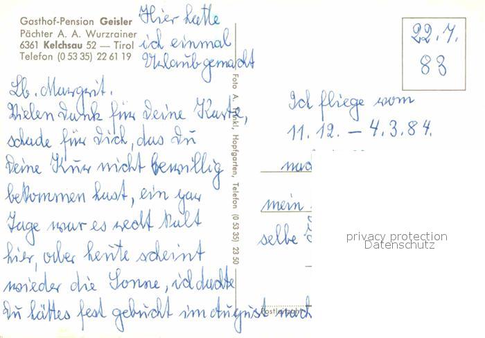 12880710 Kelchsau Gasthof Pension Geisler postalisch nicht gelaufen Erhaltung siehe scans [KathaD81] KatCode: 11390