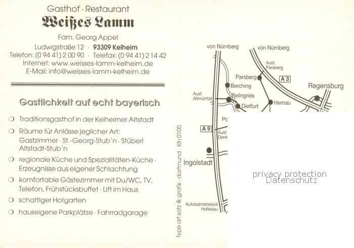 73646205 Kelheim Befreiungshalle Donaudurchbruch Gasthof Weisses Lamm St Georg Stubn postalisch nicht gelaufen Werbekarte (keine Postkarte) Erhaltung siehe scans [WerneD78] KatCode: 11110009273137