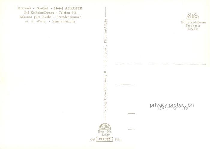 73323327 Kelheim Brauerei Gasthof Hotel Aukofer postalisch nicht gelaufen Erhaltung siehe scans [FriedD77] KatCode: 11110009273137