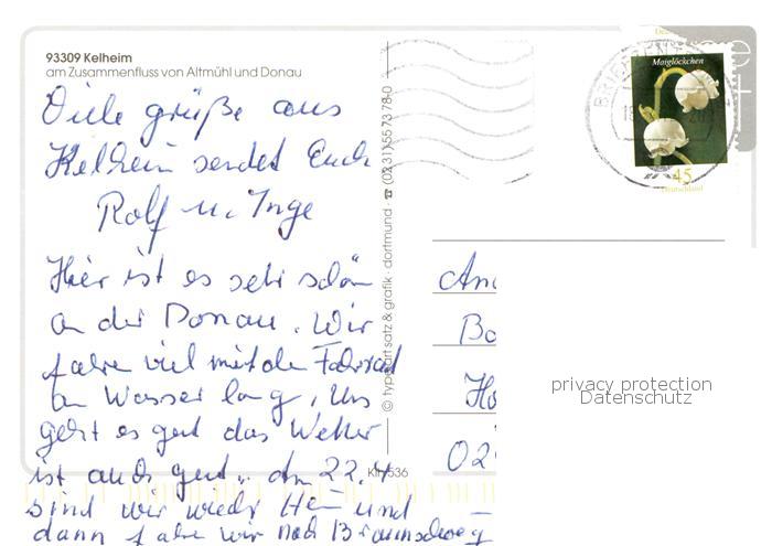 73835985 Kelheim Donau am Zusammenfluss von Altmuehl und Donau Fliegeraufnahme postalisch gelaufen Erhaltung siehe scans [WerneD78] alte Postkarte Wern Katcode 11110009273137