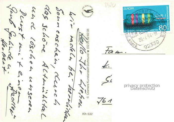 74049292 alte Postkarte Kelheim Donau Motive Stadtzentrum Strassencafés Stadtturm Donau Fahrgastschiff postalisch gelaufen Erhaltung siehe scans [FriedD77] KatCode: 11110009273137
