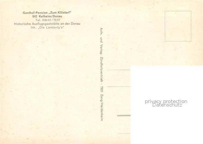 73719759 Kelheim Historische Ausflugsgaststaette Zum Kloesterl Uferpartie an der Donau postalisch nicht gelaufen Erhaltung siehe scans [FriedD77] KatCode: 11110009273137