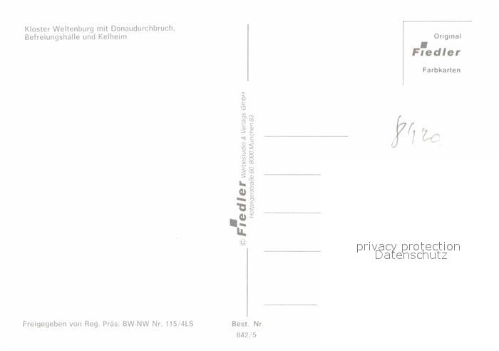 72839278 Kelheim Kloster Weltenburg mit Donaudurchbruch Fliegeraufnahme postalisch nicht gelaufen Erhaltung siehe scans [WerneD78] KatCode: 11110009273137