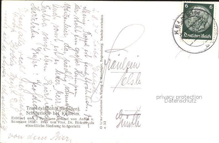 72506546 alte Postkarte Kelheim Tropfsteinhoehe Schulerloch postalisch gelaufen Erhaltung siehe scans KatCode: 11110009273137