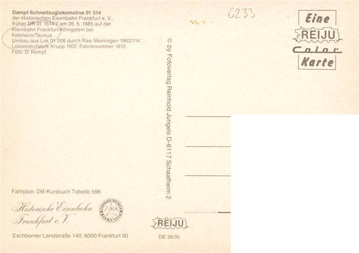 73935502 Kelkheim Dampf Schnellzuglokomotive 01 514 postalisch nicht gelaufen Erhaltung siehe scans [WerneD78] KatCode: 11110006436008