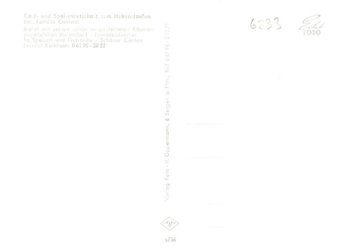 73870272 Kelkheim Panorama Gastwirtschaft zum Hohenstaufen Gastraeume postalisch nicht gelaufen Erhaltung siehe scans [FriedD77] KatCode: 11110006436008
