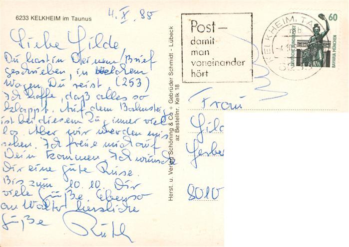 73942257 alte Postkarte Kelkheim Rathaus Brunnen Blick zum Kloster Freibad Rathaus Muenster Altes Rathaus postalisch gelaufen Erhaltung siehe scans [FriedD77] KatCode: 11110006436008