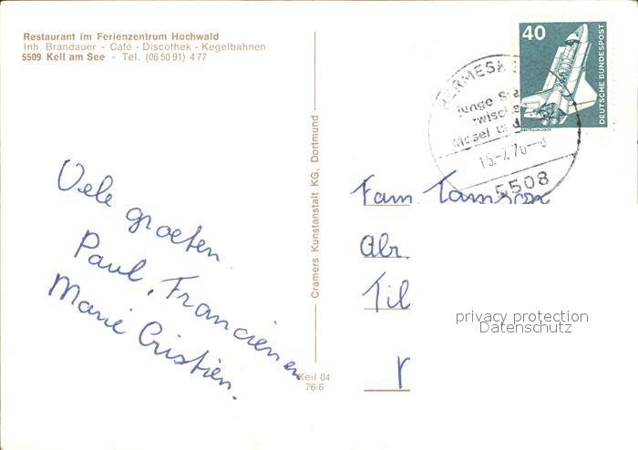 72921439 alte Postkarte Kell See Ferienzentrum Hochwald Panorama Kneippanlage Restaurant Cafe Minigolf postalisch gelaufen Erhaltung siehe scans [WerneD48] KatCode: 11110007235058