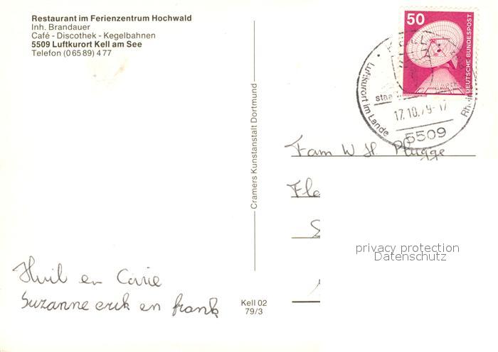 73308200 alte Postkarte Kell See Fliegeraufnahme Camping Restaurant im Ferienzentrum Hochwald postalisch gelaufen Erhaltung siehe scans [LiesaD40] KatCode: 11110007235058