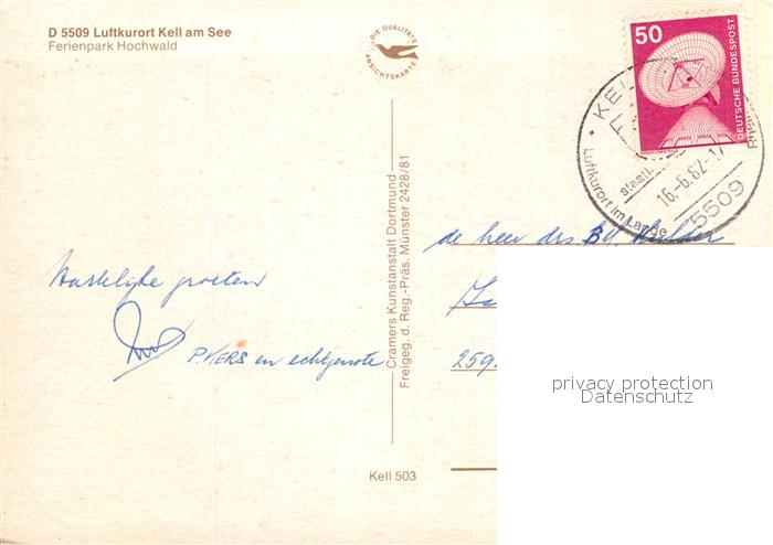 72929499 alte Postkarte Kell See Fliegeraufnahme Ferienpark Hochwald postalisch gelaufen Erhaltung siehe scans [LiesaD40] KatCode: 11110007235058