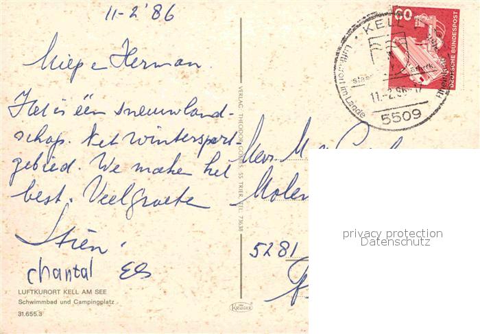 72655091 alte Postkarte Kell See Fliegeraufnahme Freibad postalisch gelaufen Erhaltung siehe scans [LiesaD40] KatCode: 11110007235058