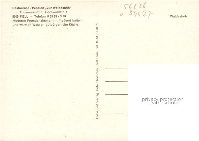 73569603 Kell See Restaurant Pension Zur Waldeshoeh postalisch nicht gelaufen Erhaltung siehe scans [FriedD77] KatCode: 11110007235058