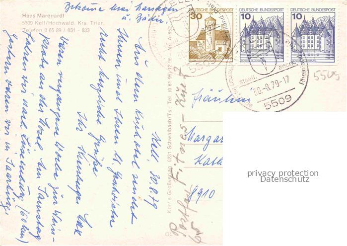 74053244 alte Postkarte Kell See Trier Hochwald Rheinland-Pfalz Kurhotel Haus Marquardt postalisch gelaufen Erhaltung siehe scans [FriedD77] KatCode: 11110007235058