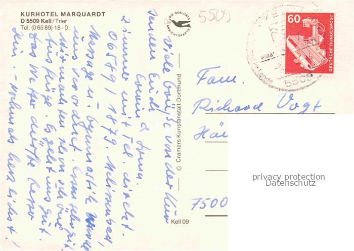 74053432 alte Postkarte Kell See Trier Hochwald Rheinland-Pfalz Kurhotel Marquardt Luftfoto Landschaftspanorama Pferdekoppel Freibad postalisch gelaufen Erhaltung siehe scans [FriedD77] KatCode: 11110007235058