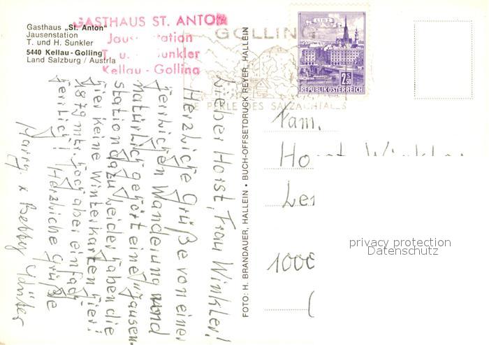 73588112 alte Postkarte Kellau Golling Gasthaus St Anton Gartenterrasse postalisch gelaufen Erhaltung siehe scans [FriedD77] KatCode: 11390323050204