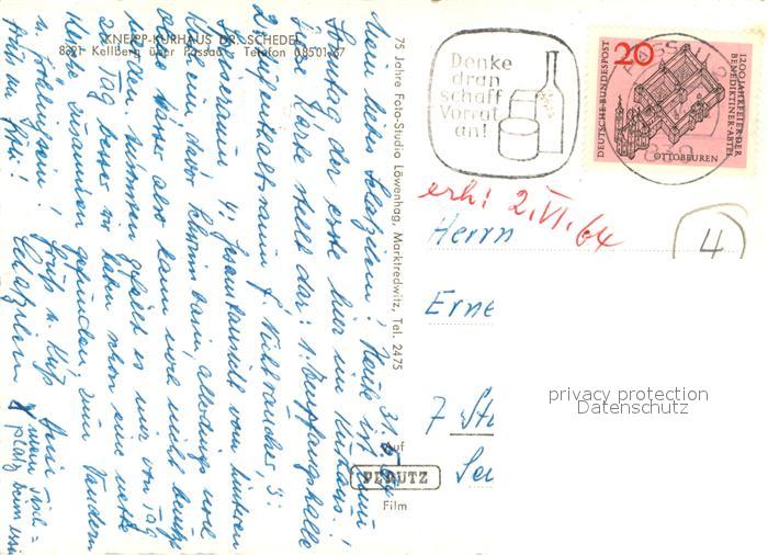 73637829 alte Postkarte Kellberg Kurhaus Dr. Schedel Restaurant Foyer postalisch gelaufen Erhaltung siehe scans [FriedD77] KatCode: 11110009275150