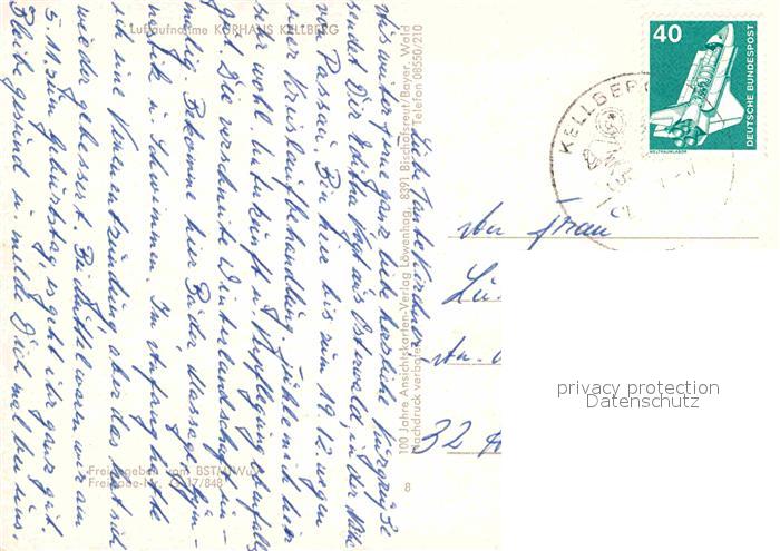 72697676 alte Postkarte Kellberg Kurhaus Fliegeraufnahme postalisch gelaufen Erhaltung siehe scans [FriedD77] KatCode: 11110009275150
