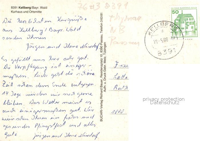 72929556 alte Postkarte Kellberg Kurhaus Ortsmitte postalisch gelaufen Erhaltung siehe scans [LiesaD40] KatCode: 11110009275150
