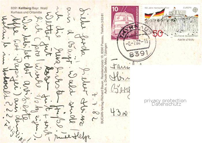 72880155 alte Postkarte Kellberg Kurhaus und Ortsmitte postalisch gelaufen Erhaltung siehe scans [FriedD77] KatCode: 11110009275150