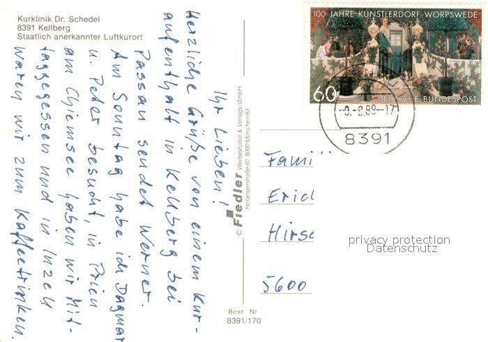 73680050 alte Postkarte Kellberg Kurklinik De. Schedel postalisch gelaufen Erhaltung siehe scans [LiesaD40] KatCode: 11110009275150
