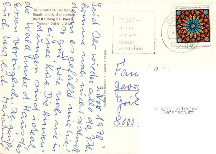 72779700 alte Postkarte Kellberg Kurklinik Dr Schedel Sanatorium Park postalisch gelaufen Erhaltung siehe scans [FriedD77] KatCode: 11110009275150