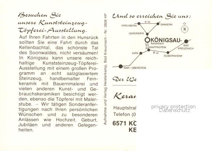 73543631 Kellenbach Koenigsau Toepferei Seifert Details postalisch nicht gelaufen Werbekarte (keine Postkarte) Erhaltung siehe scans [WerneD78] KatCode: 11110007133203