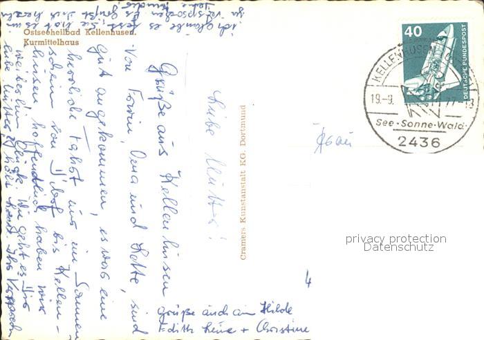 72199419 alte Postkarte Kellenhusen Ostseebad Kurmittelhaus postalisch gelaufen Erhaltung siehe scans KatCode: 11110001055025