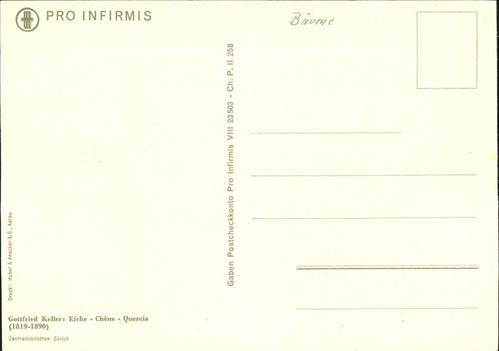 KELLER Gottfried Zuerich (1819-1890) Kuenstlerkarte Eiche Baum postalisch nicht gelaufen gute Erhaltung