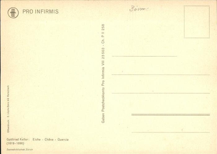 KELLER Gottfried Zuerich (1819-1890) Kuenstlerkarte Eiche Chene Quercia Baum postalisch nicht gelaufen gute Erhaltung