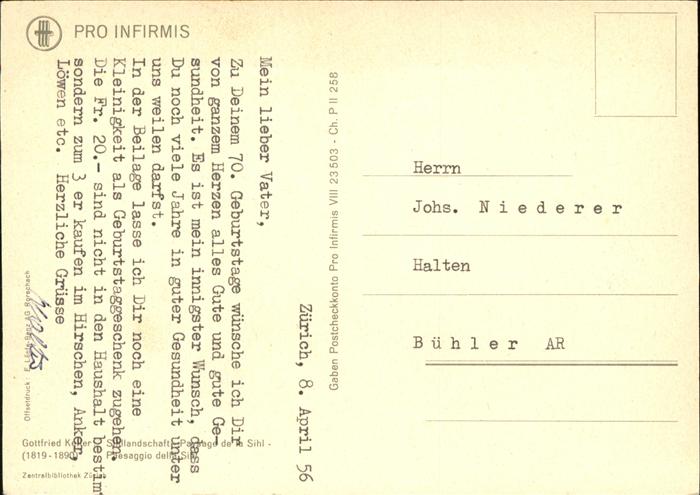 KELLER Gottfried Zuerich (1819-1890) Kuenstlerkarte Sihl Landschaft