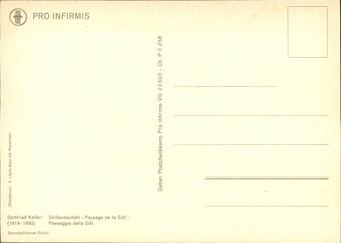 KELLER Gottfried Zuerich (1819-1890) Kuenstlerkarte Sihllandschaft postalisch nicht gelaufen gute Erhaltung