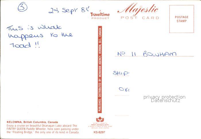 old postcard Kelowna Floating Bridge postalisch gelaufen Erhaltung siehe scans