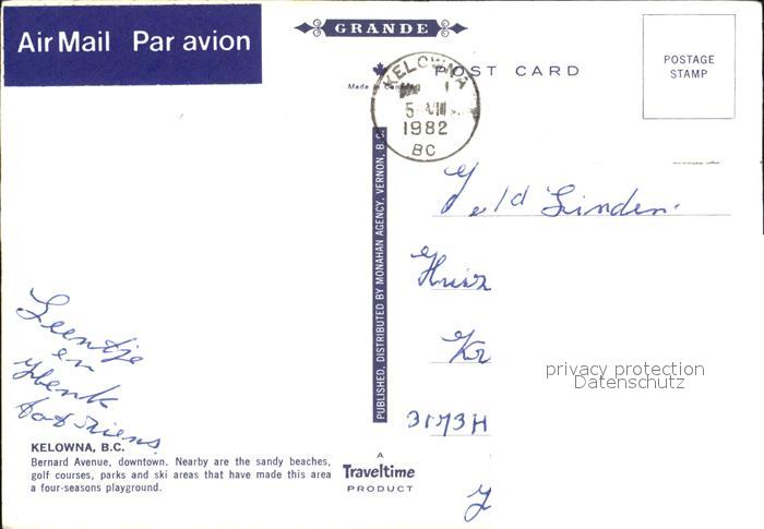 old postcard Kelowna Strassenpartie postalisch gelaufen Erhaltung siehe scans