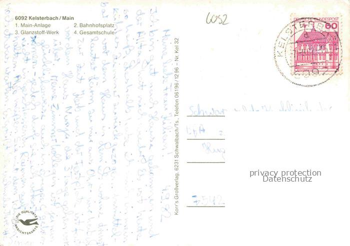 74155001 alte Postkarte Kelsterbach Gross-Gerau Hessen Main-Anlage Bahnhofsplatz Glanzstoff-Werk Gesamtschule postalisch gelaufen Erhaltung siehe scans [FriedD77] KatCode: 11110006433007
