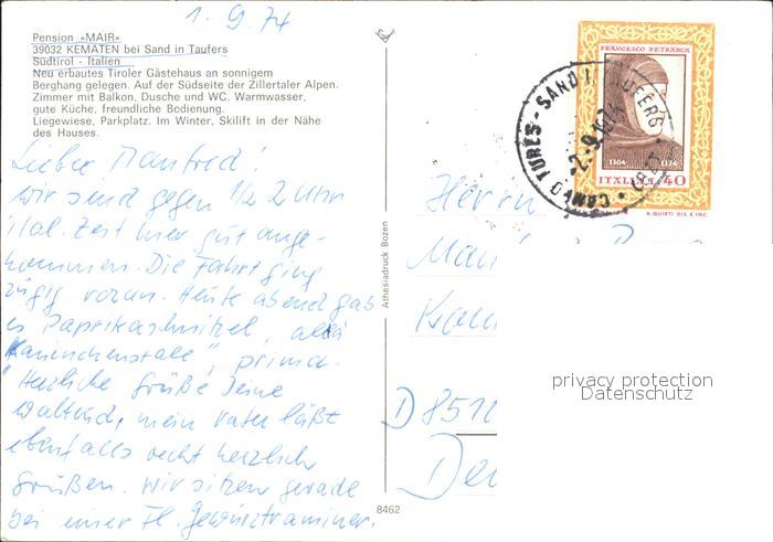 old postcard Kematen Sand Pension Mair postalisch gelaufen Erhaltung siehe scans