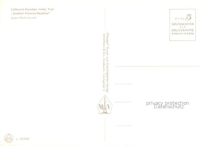 13199803 Kematen Tirol Gasthaus Pension Rauthhof Martinswand postalisch nicht gelaufen Erhaltung siehe scans [KathaD81] KatCode: 11390332070320