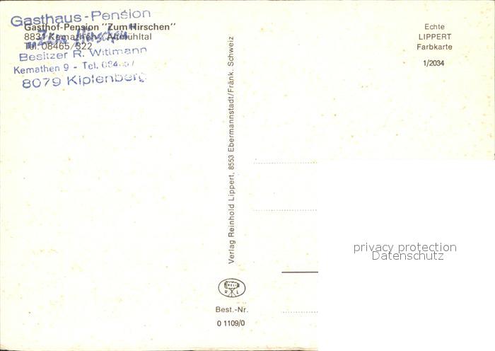 72157366 Kemathen Gasthof Pension Zum Hirschen postalisch nicht gelaufen Erhaltung siehe scans KatCode: 11110009176138