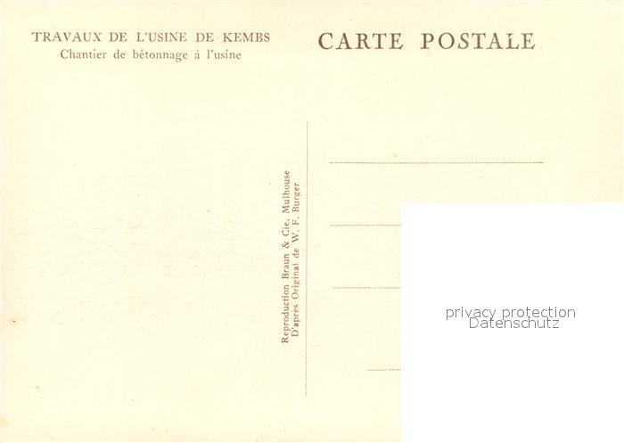 13512084 Kembs Elsass Travaux de l’Usine Chantier de betonnage a l’usine postalisch nicht gelaufen Erhaltung siehe scans [WerneD78] KatCode: 11170068468163