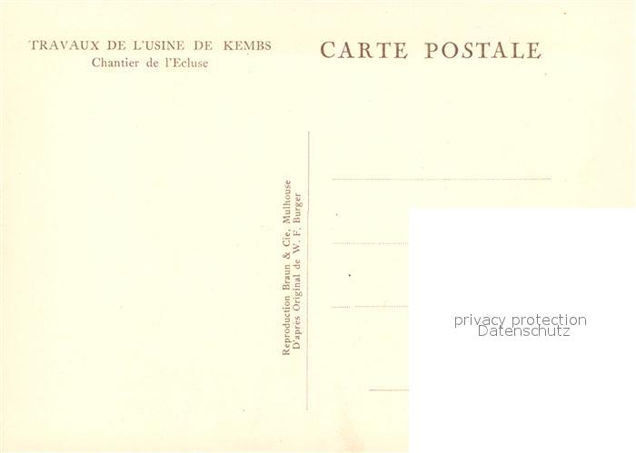 13512077 Kembs Elsass Travaux de l’Usine Chantier de l’Ecluse postalisch nicht gelaufen Erhaltung siehe scans [WerneD78] KatCode: 11170068468163