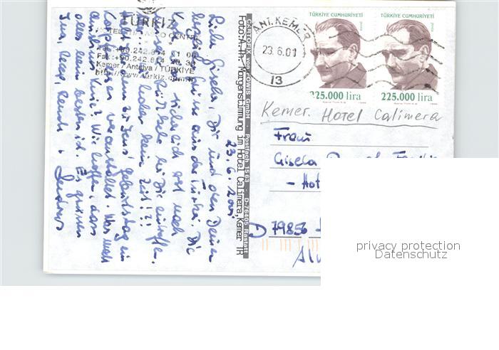 old postcard Kemer Tuerkei Turkey Hotel Thalasso Centre postalisch gelaufen Erhaltung siehe scans