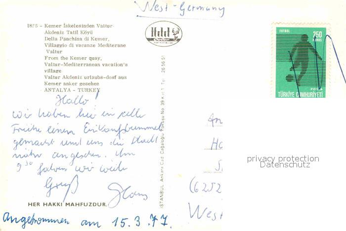 Kemer Tuerkei Turkey postalisch nicht gelaufen Erhaltung siehe scans [NatalD47]
