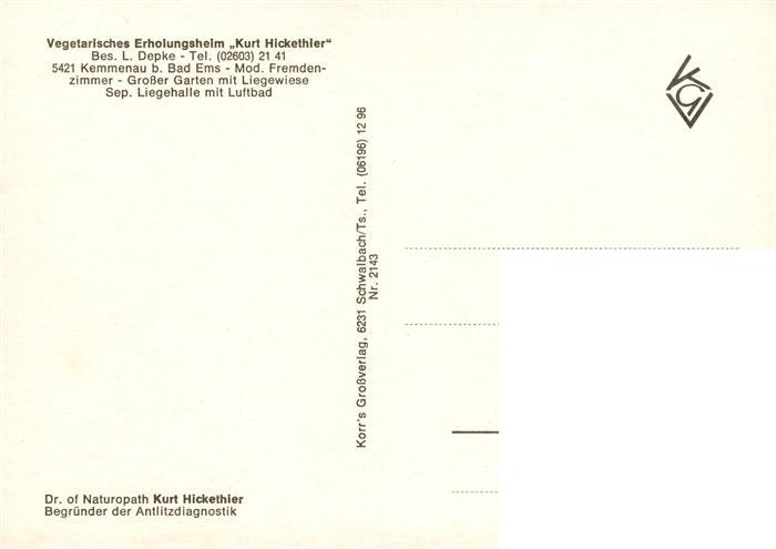 73896722 Kemmenau Vegetarisches Erholungsheim Kurt Hickethier postalisch nicht gelaufen Erhaltung siehe scans [WerneD78] KatCode: 11110007141071