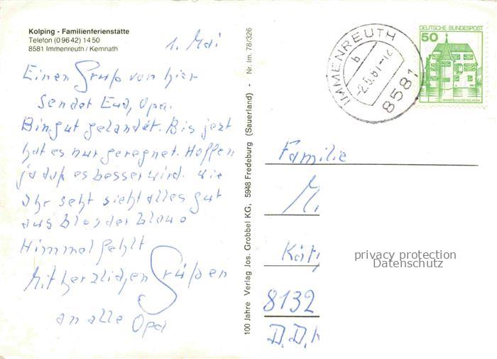 74043731 alte Postkarte Kemnath Immenreuth Kolping Familienferienstaette postalisch gelaufen Erhaltung siehe scans [FriedD77] KatCode: 11110009377127