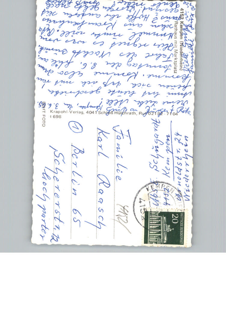 31174943 Kempen Niederrhein Marktplatz postalisch nicht gelaufen KatCode: 11110005166012