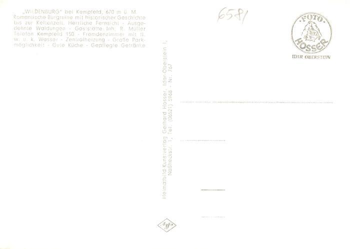 73883775 Kempfeld Wildenburg Burgruine Gaststaette Fernsicht postalisch nicht gelaufen Erhaltung siehe scans [FriedD77] KatCode: 11110007134046