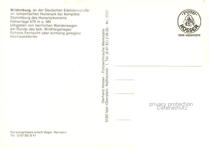 73249921 Kempfeld Wildenburg mit Wildfreigehege postalisch nicht gelaufen Erhaltung siehe scans [WerneD78] KatCode: 11110007134046