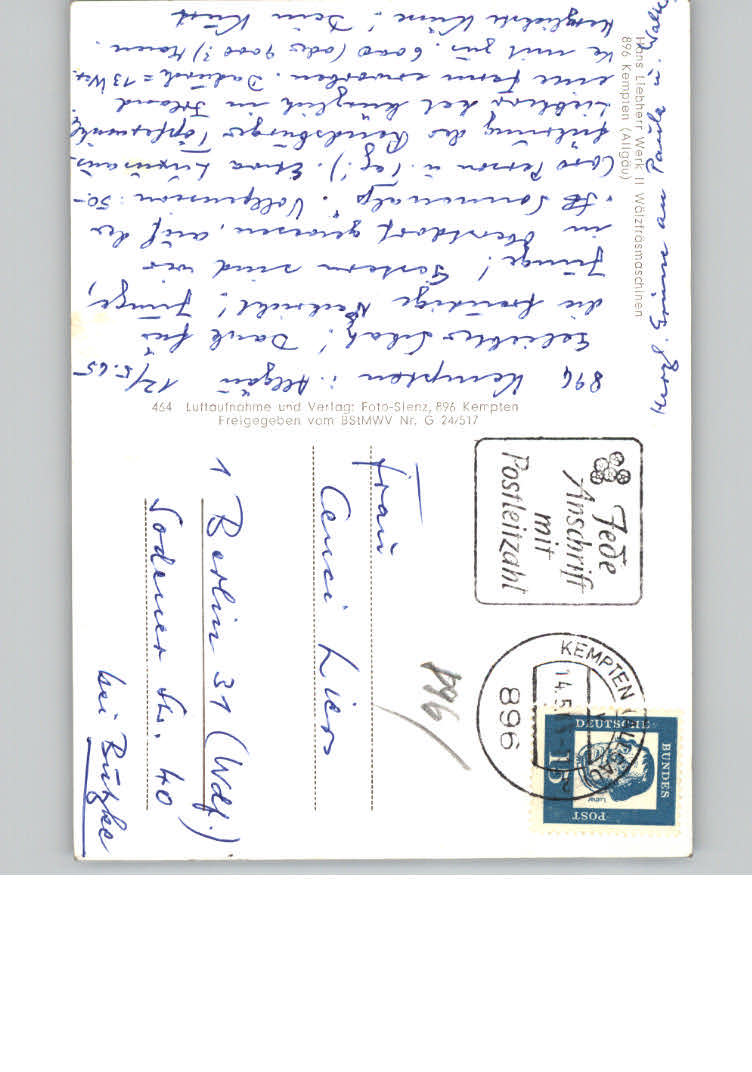 31174001 Kempten Allgaeu postalisch nicht gelaufen KatCode: 11110009763000