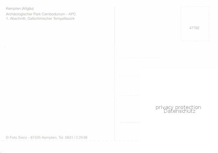 72797135 Kempten Allgaeu Archaeologischer Park Cambodunum postalisch nicht gelaufen Erhaltung siehe scans [LiesaD40] KatCode: 11110009763000